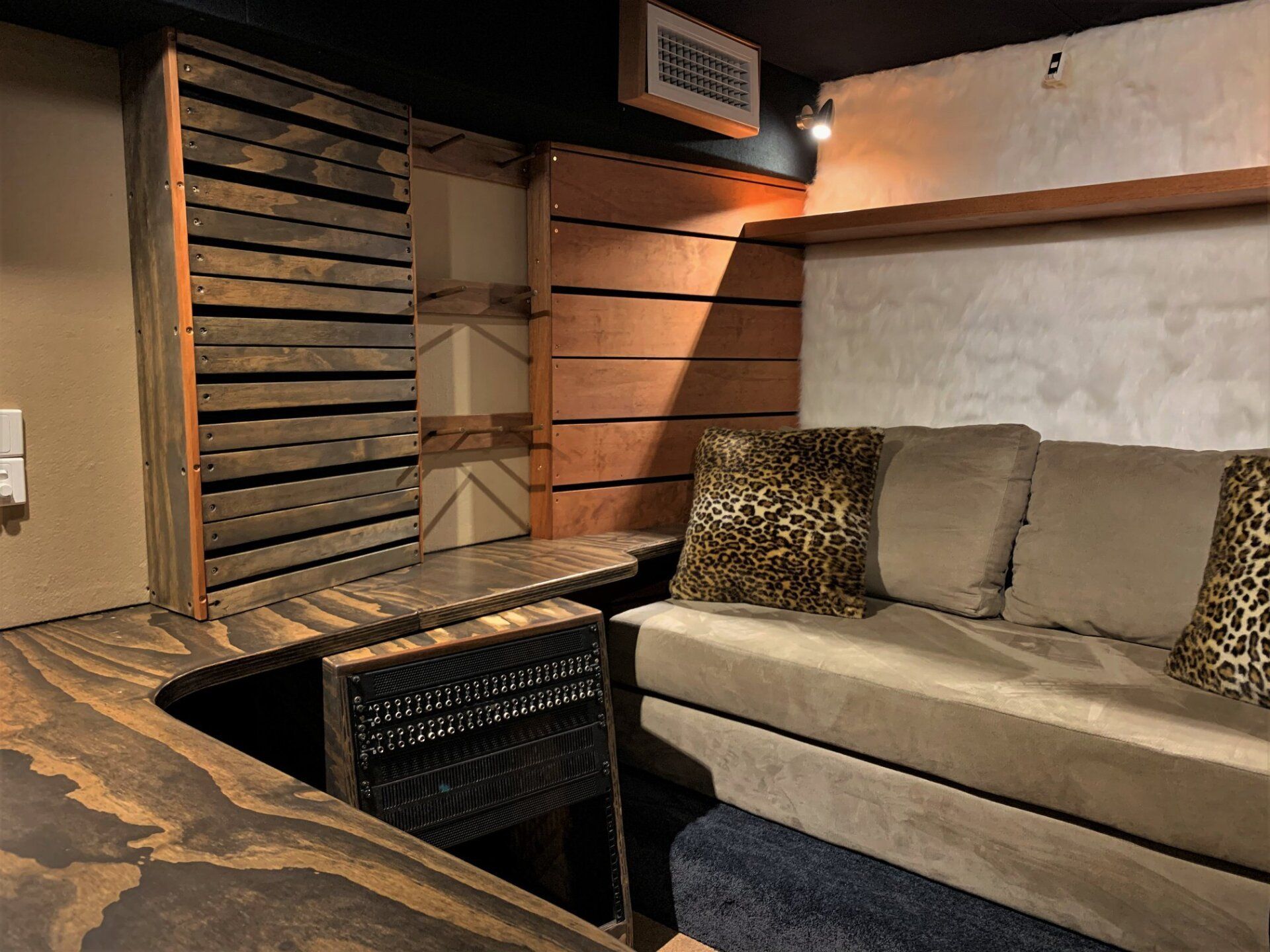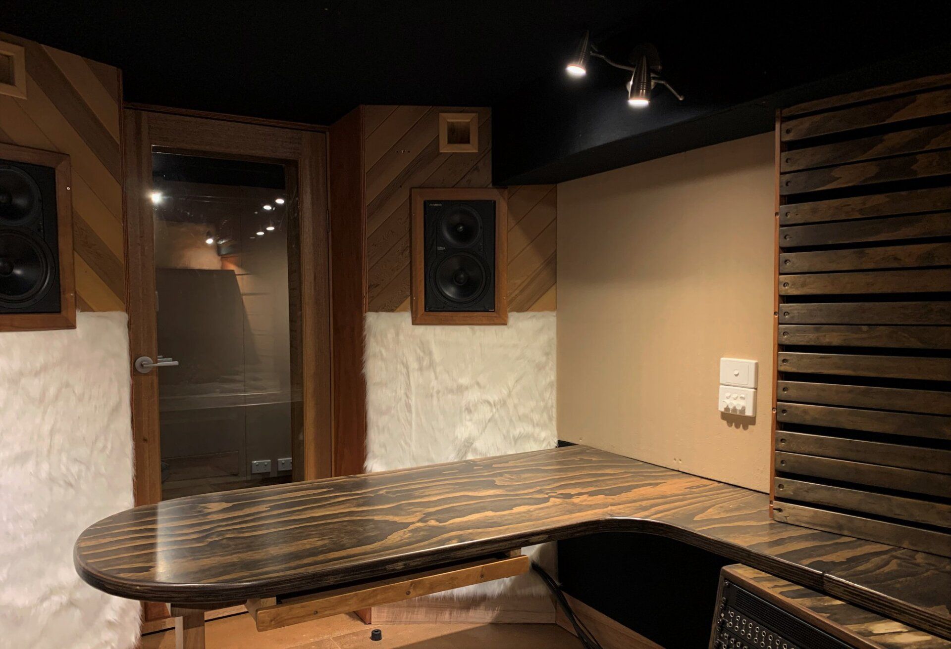 The desk furniture in the control room or ‘all-in-one’ studio can be tailor designed to suit any specific studio requirements you may have, with bespoke rack space, drawers etc.